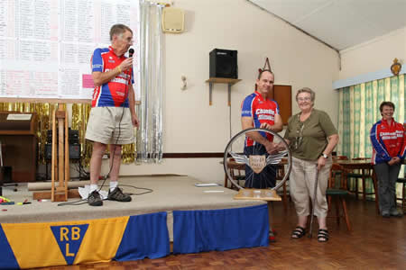 Ian receiving the Nev Crane Trophy from Jean